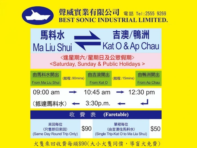 所有預購船票的乘客必需於 中午12時前入數並提供入數證明。
