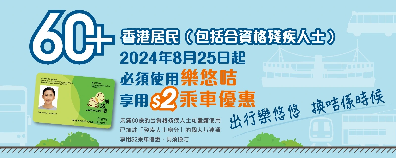 合資格長者及殘疾人士可享有2$公共交通優惠。